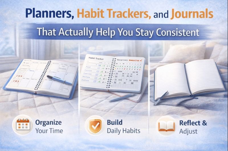 By using planners to organize time, habit trackers to reinforce routines, and journals to reflect and reset, staying consistent becomes less about motivation and more about having the right support in place.